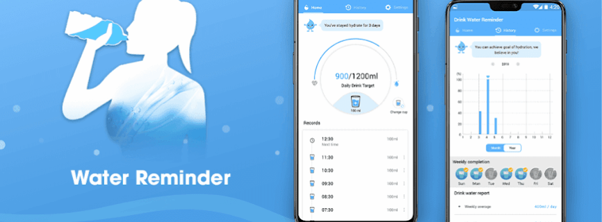 Reminds you to drink water, a great application that take care of your health.